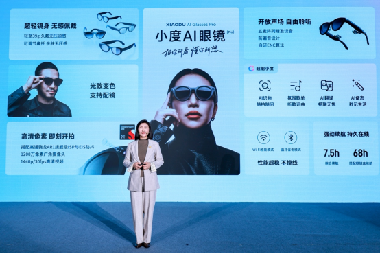 此外,搭载了超能小度的硬件新品——小度AI眼镜Pro与小度智能摄像机C1200三摄版和C800视频通话版、小度智能音箱Fun也一同在现场露脸。