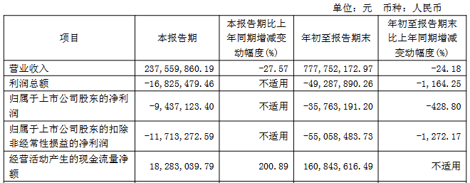 2025年1-9月,公司完成经营收入7.78亿元,同比下降24.18%;归属于上市公司股东的纯利润是-3,576.32万元,上年同期为1,087.68万元;归属于上市公司股东的扣除非经常性损益的净利润为-5,505.85万元,上年同期为469.72万元;经营活动发生的现金流量净额为1.61亿元。